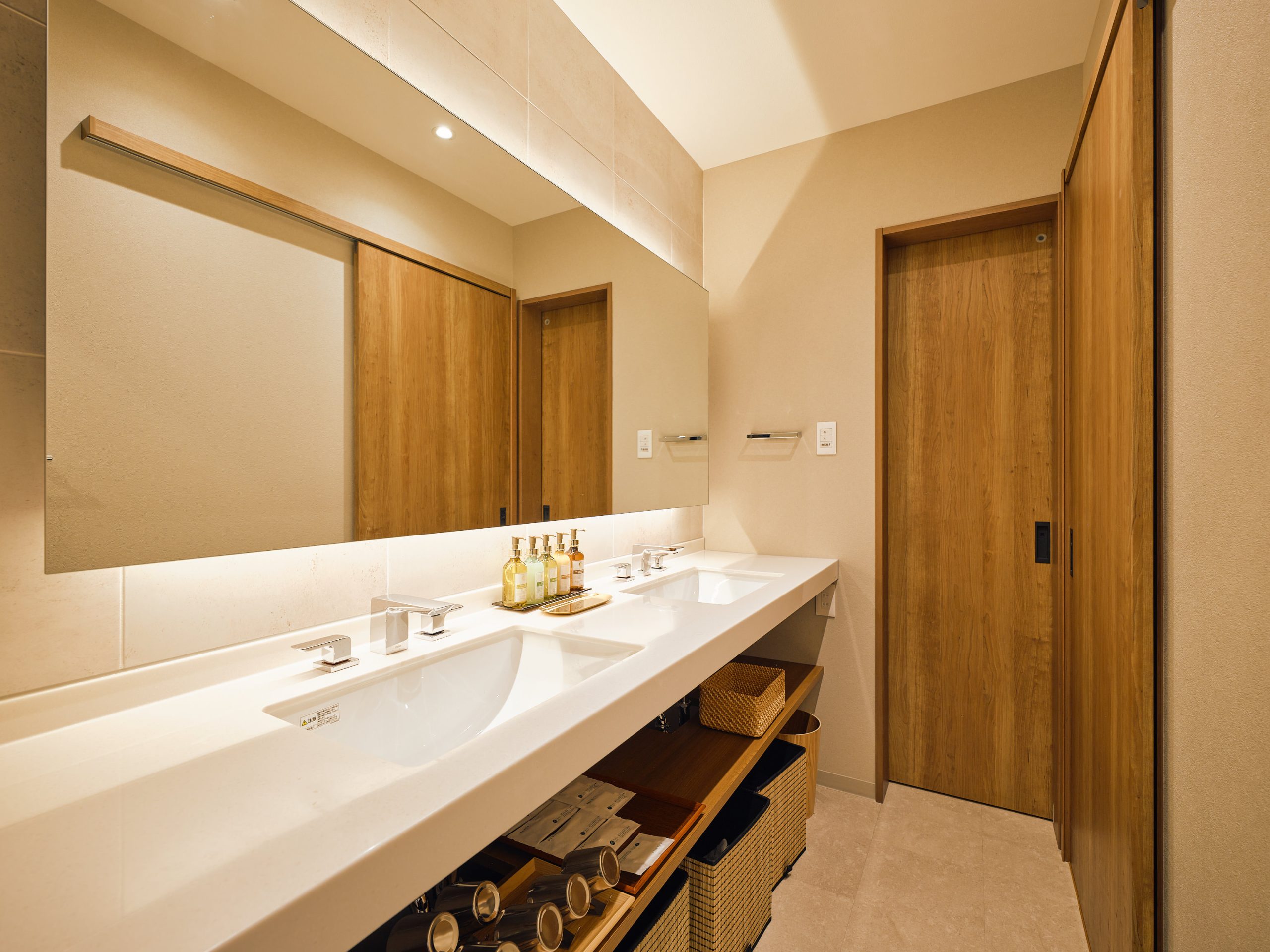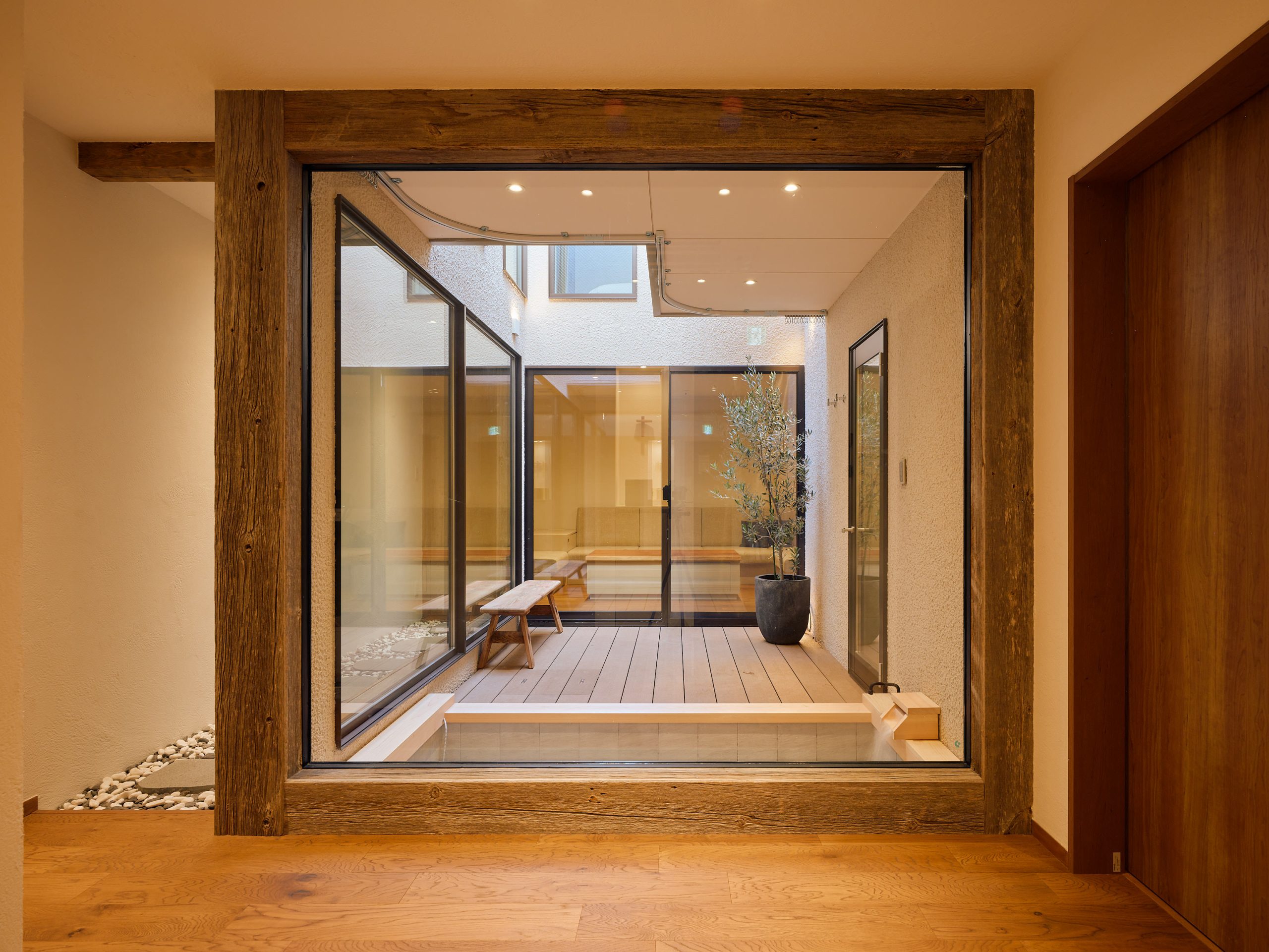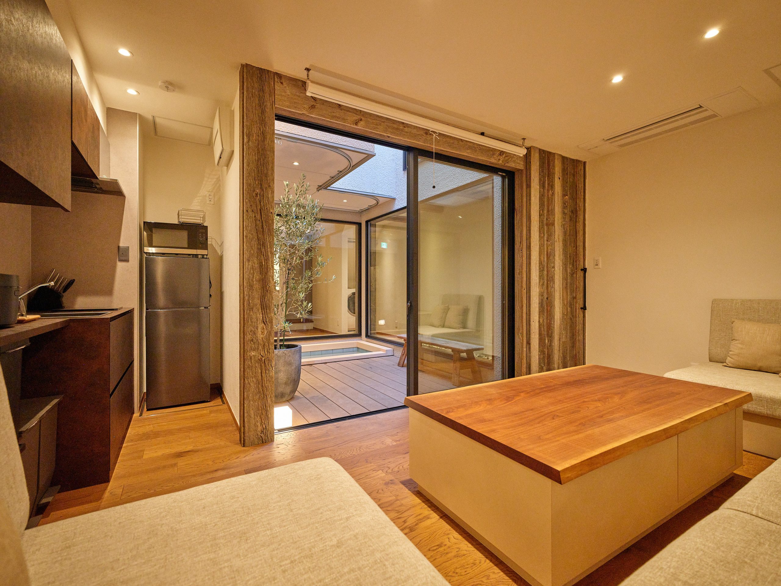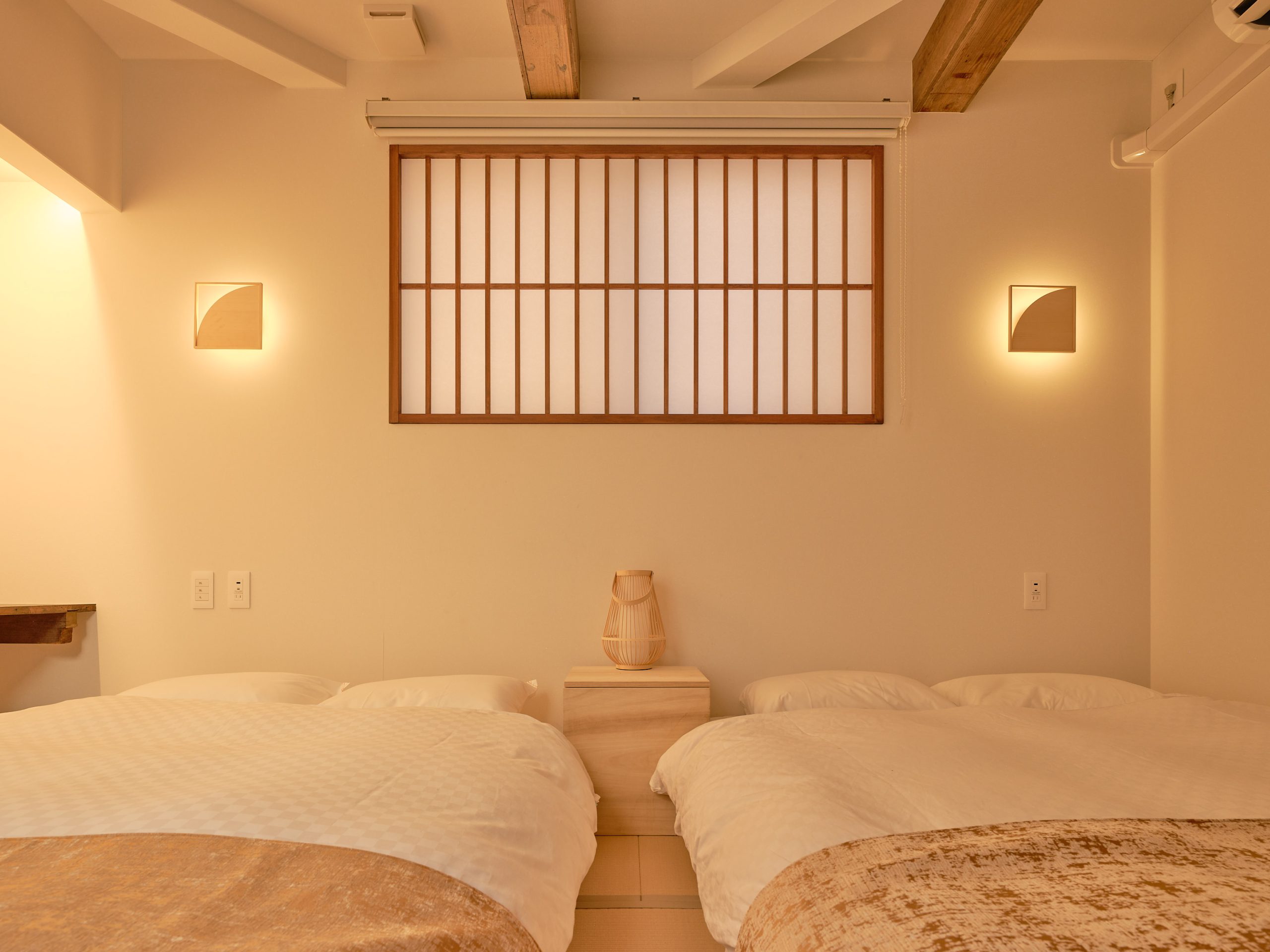TOP > WORKS > 大門屋 大阪市 宿泊施設 | 大門屋 吹き抜けが生む”都会の静寂”新築×古材×建築技法で、騒音 に配慮した、地域と共存する高級民泊「大門屋」を施工させて頂きました。 WORKS